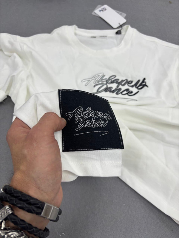 Логотип на груди и рукаве на белых футболках
